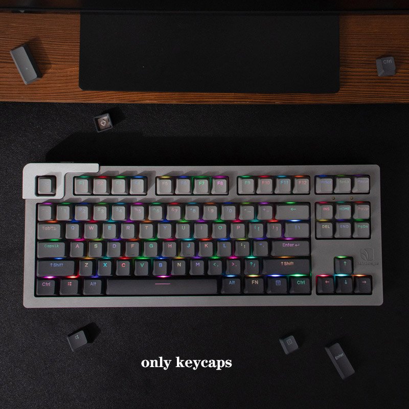Introducing the GMK+ Black Grey OEM Custom Keycaps Set – a masterpiece in the world of mechanical keyboards that encapsulates elegance and sophistication in every keystroke. This exquisite keycap set, comprising 123 meticulously crafted keycaps, is designed to transform your keyboard into a work of art while elevating your typing experience to new heights. In the realm of design, the interplay of black and grey has always been synonymous with timeless elegance. It’s a color scheme that exudes refinement, effortlessly blending modernity with a classic touch. The GMK+ Black Grey OEM Custom Keycaps Set takes this classic color palette and weaves it into every aspect of its design.
