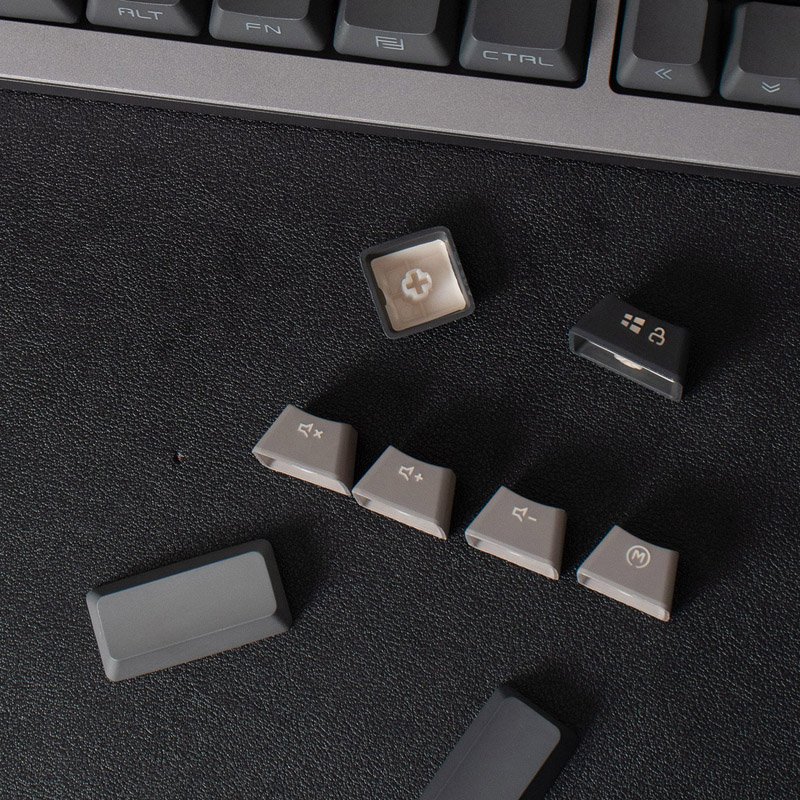 The keycaps in this set are not just ordinary; they are a statement. Each keycap is sculpted with the OEM profile, known for its familiar and comfortable shape that accommodates a wide range of typing styles. The slightly curved top surface of the keycaps invites your fingertips to dance across the keyboard, creating a harmonious synergy between form and function. Texture plays a pivotal role in this keycap set’s design. The black keycaps sport a matte, velvety finish, while the grey keycaps are adorned with a subtle, lustrous sheen. This contrast in texture not only adds a tactile dimension to your typing experience but also creates an elegant visual rhythm as your fingers glide from key to key. Crafted with precision and attention to detail, the GMK+ Black Grey OEM Custom Keycaps Set is compatible with a wide range of mechanical keyboards, allowing you to personalize your keyboard with ease.