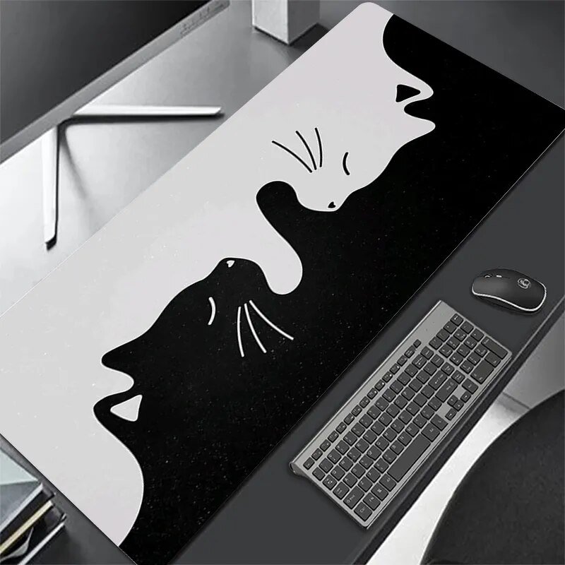 The GMK+ Yin Cat Yang Custom Desk Mat is a canvas of imagination, where the feline dance of light and shadow unfolds. The yin cat, adorned with a subtle celestial glow, embodies introspection and tranquility. Its fur ripples like liquid silk, capturing the essence of moonlight in every stroke. As your hand glides over the surface, you can almost feel the calm energy emanating from this mystical creature.
